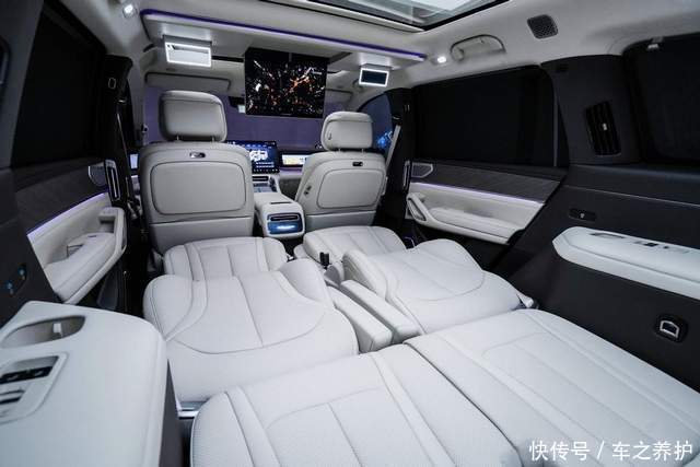 车内采用6座布局,后排座椅配有多向的电动调节与座垫升降功能,配合一键切换的观影模式、露营大床模式,真正实现全场景空间自由,相较于同级产品,其1990mm车高版本带来的头部空间优势,让乘坐表现都具备行政级舒适性。